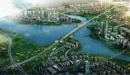 The third section is from about 300 m north of the Knowledge Avenue to about 400 m south of Zhongtai Expressway (Jiufo Sewage Treatment Plant), with the overall length of 5.6 km, urban trunk road of Ι class, standard cross section of 100 m and motor way of two-way 12-lane, including the road, tunnel, bridge, water supply & drainage, transportation, lighting, green landscape, integrated pipe trench and power cable trench works.