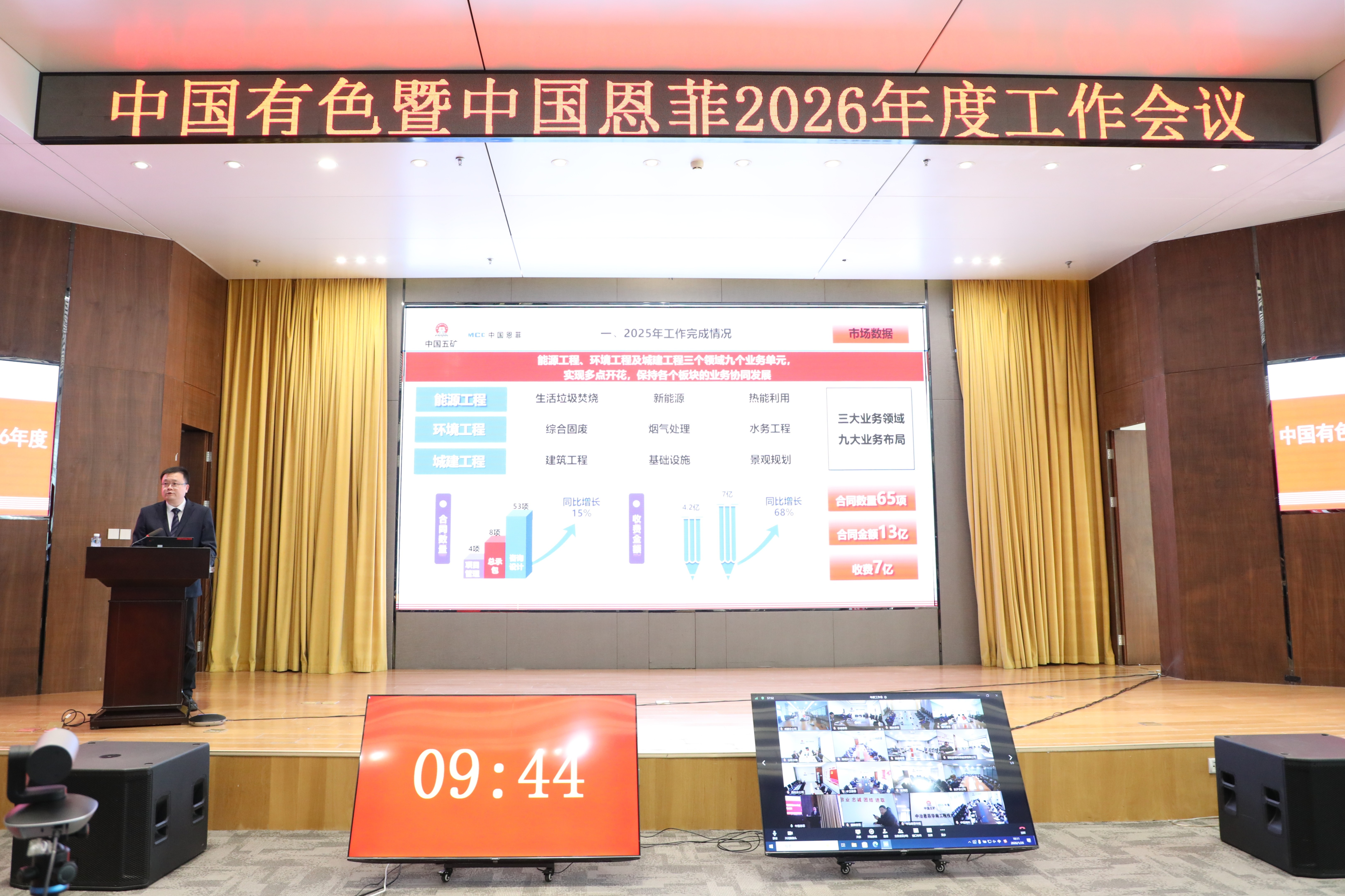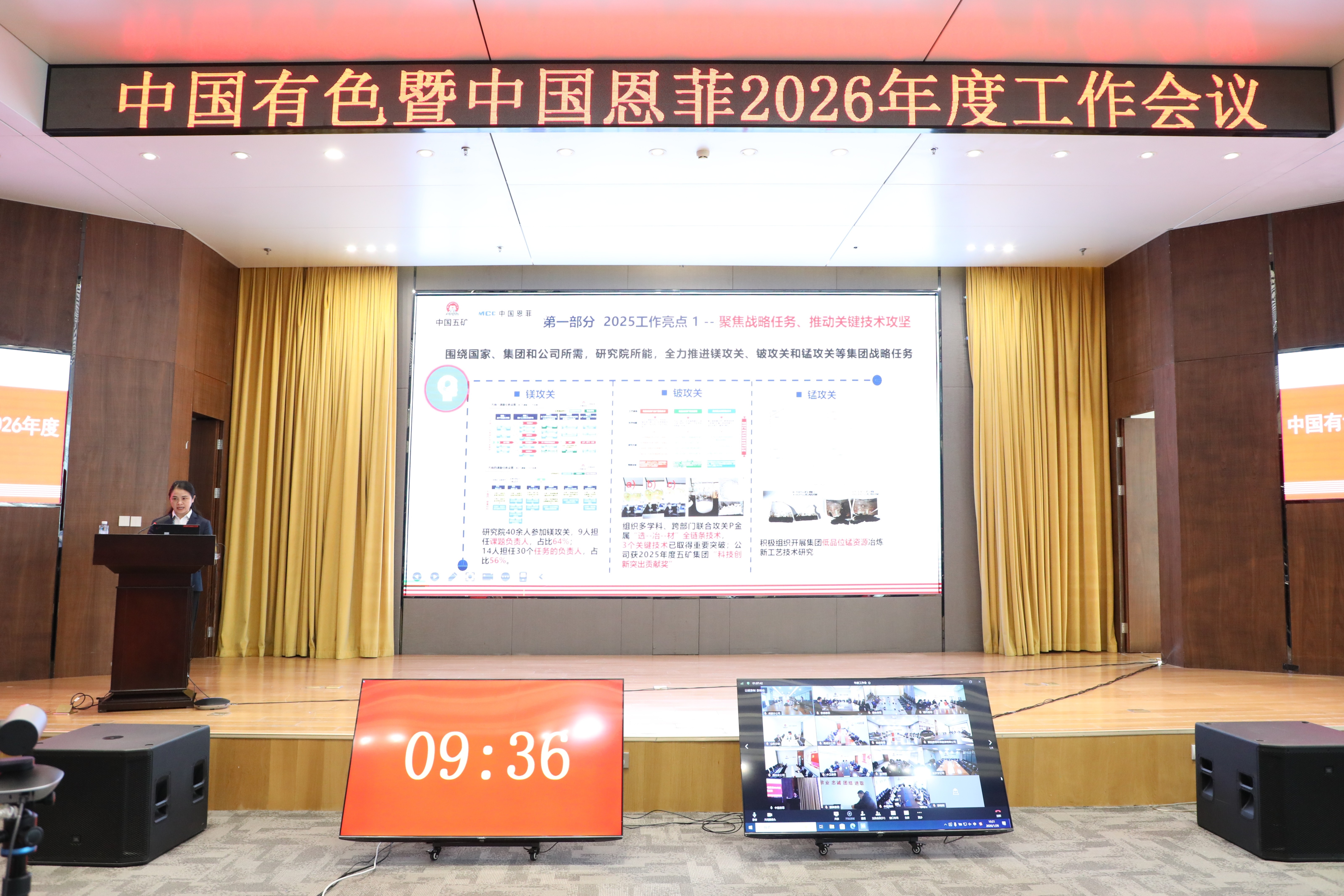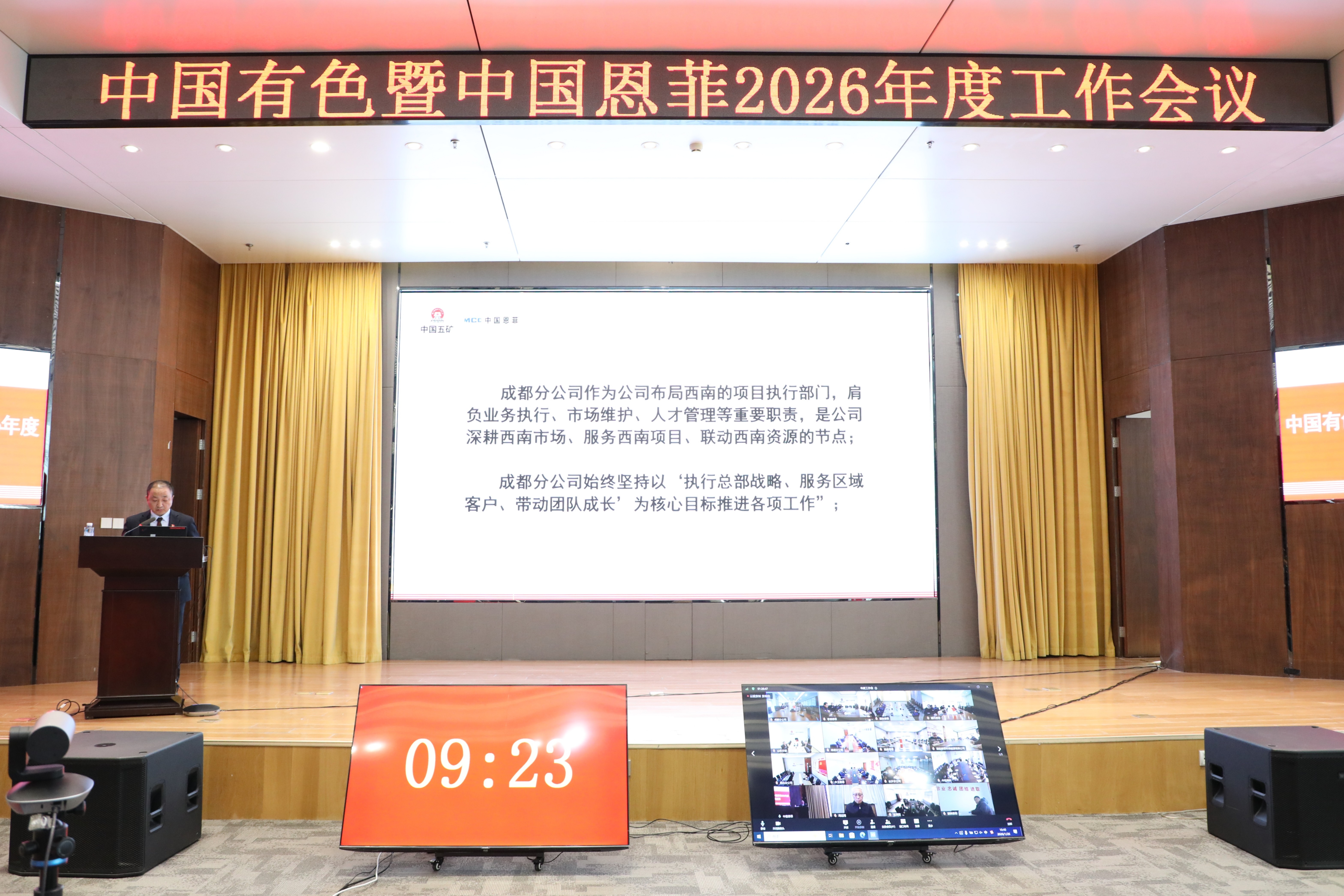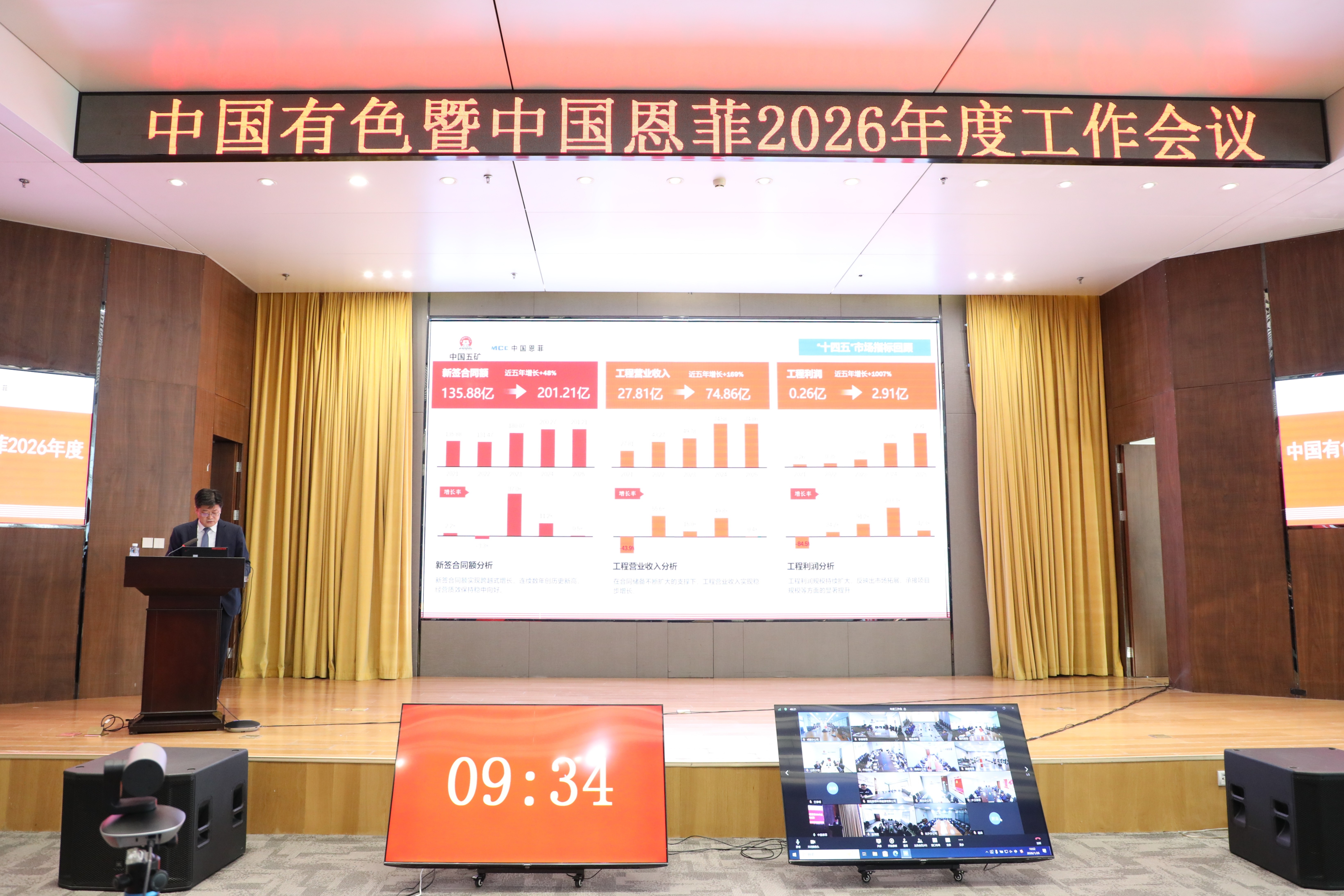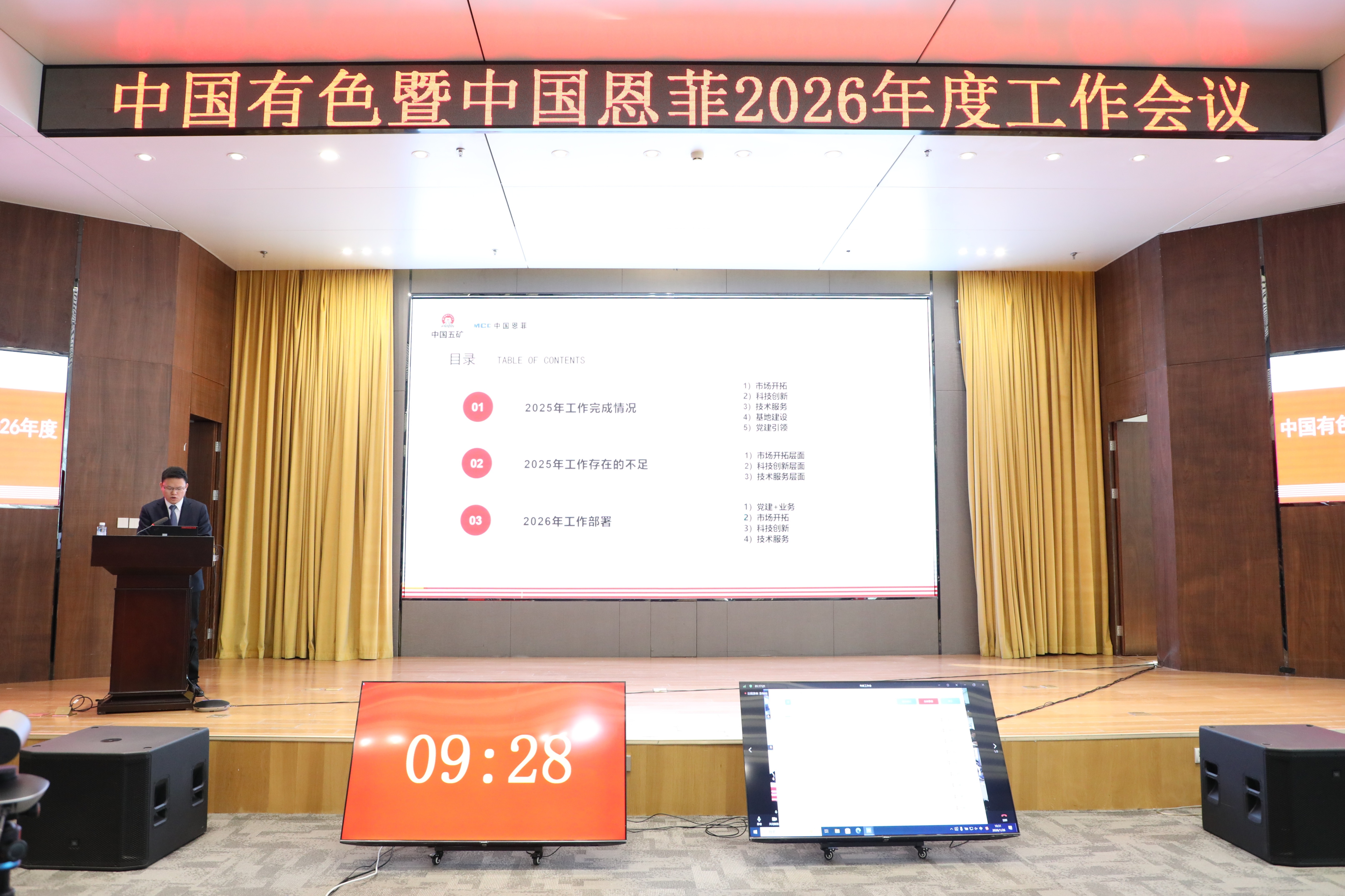 1月26日,中國有色暨中國恩菲召開2026年度工作會議。公司黨委書記、董事長劉誠出席會議并講話,黨委副書記、總經(jīng)理鮑巍作工作報告,總會計師、副總經(jīng)理張雁鏑宣讀表彰決定,黨委副書記張合文主持會議。公司外部董事視頻參會,公司領導班子成員出席會議。